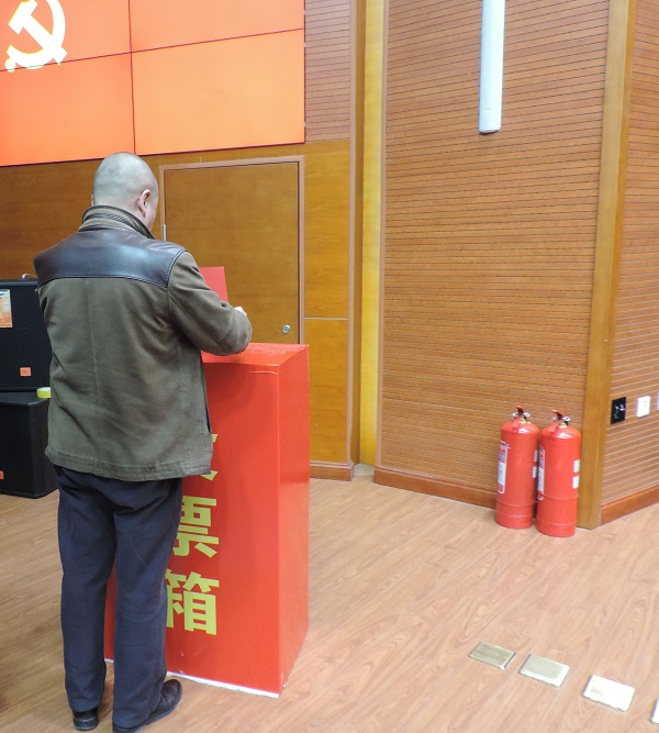 大会第三项由孙丽萍同志向大会提交了本次选举的候选人名单,其后由监票人董光辉主持选举环节。经清点到会党员人数、清理票箱后确认无误,开始发放选票,到会党员依次有序投票。