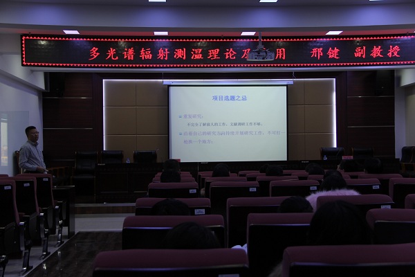 12月14日下午2:00,由邢键副教授主讲的“多光谱辐射测温理论及应用”学术报告会,在成栋楼722如期举行。机电工程学院的部分教师和硕士、博士研究生出席了此次会议,报告会由机电工程学院副院长李树森教授主持。