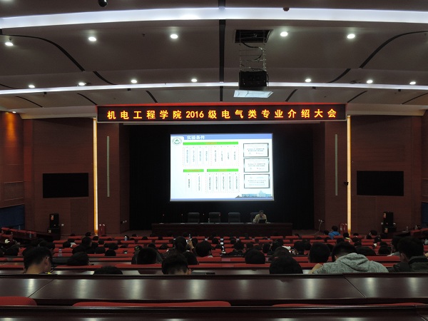 会议开始,老师们对新生选择东北林业大学机电工程学院表示欢迎并对进入电气类专业的同学表示祝贺,进入会议主题,电气工程及其自动化、通信工程、电子信息工程、自动化专业的老师依次为新生们分别从各专业将要接触的专业知识、专业内涵、培养目标及大学四年后的发展趋势等各方面进行了综合的介绍和说明。老师们用通俗易懂的形象比喻让新生们更容易地接受抽象复杂的专业知识,得到了新生们的积极响应。除了对本专业的简单介绍外,老师们还在学习态度和学习方法等方面给出了一些建议,帮助同学们尽快适应大学生活,并对同学们未来的发展寄予了很高的期望。八点整,机电工程学院2016级电气类专业介绍大会在热烈的掌声中圆满结束。