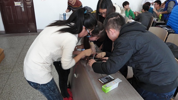 为了加强学生的实践动手能力,2015年10月30日,宋其江老师和尹力老师又在2014级车辆工程学生中组织开展了“三控开关控制照明灯线路安装”实训项目活动。学生每5人进行自由分组,以小组为单位现场连接电路,每两组进行PK,并进行问题答辩。根据现场线路的完成情况、答辩的表现和实训报告书给出最终成绩,按照成绩分布给予一定分数计入本课程的平时分数。这种真刀真枪的形式极大地调动了学生的学习积极性,活动现场紧张热烈。通过这次活动,培养了学生对电工电子综合知识进行应用的能力,提高了学生动手实践能力。此次活动取得了良好的授课效果。(文/李丹丹,图/宋其江)