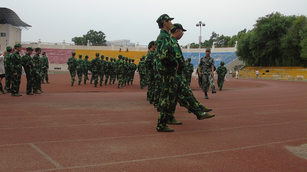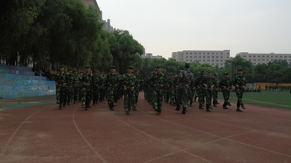 机电工程学院14级参训同学共分为七个连队,在田径场进行训练。21日上午进行的是正步行进训练,作为考察大项,同学们都练得十分认真,也十分辛苦。但在休息时,同学们还与教官热情互动,连队之间互相拉歌,欢乐而轻松。