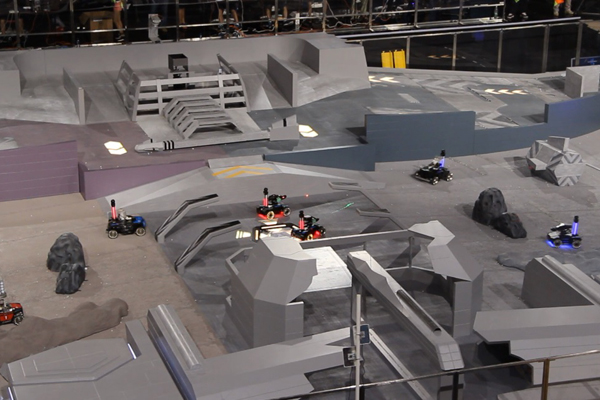 总决赛采用了太空废墟主题赛场,要求各参赛队伍的机器人在模仿月球表面坑洼不平的场地上进行“战斗”,比赛中伴有陨石掩体,基地、维修站、瞭望塔、补给站、战壕、桥梁等“军事设备”。每队派出5辆“战车”参赛,战车的角色分为步兵、射手、炮手、哨兵等,战车上安装的可视血条装置能反映出机器人当前状况,被攻击次数过多导致“血量”不足的机器人会被切断电源,“扫地出局”。参赛者在场外通过电脑屏幕,用鼠标键盘实时操控战车,在各个队员的配合下进行对战。比赛汇聚了当今科研领域尖端的机器人研发技术,并融入了电子竞技元素。所有参赛机器人均由参赛队自行设计、研发、组装和操作,为了让“汽车人”能更方便地移动,更精准有力地打击对手,每一个设计都凝结了选手的智慧和思考。