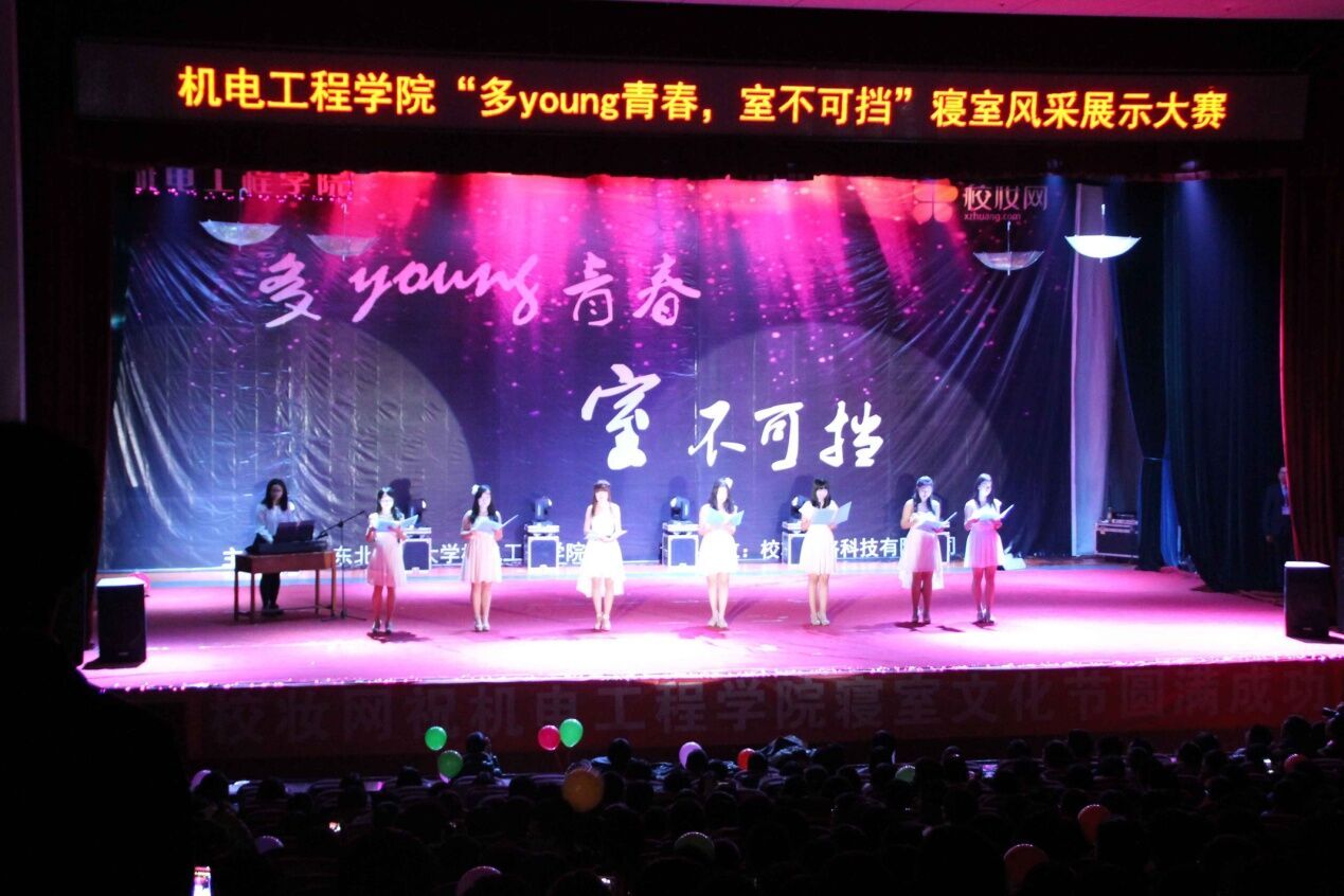 2014年12月10日晚六点,机电工程学院“多young青春,室不可挡”寝室文化展示大赛于科学会堂拉开帷幕。此次展示大赛由机电工程学院学生会主办,机电工程学院团委书记郑燕老师,机电工程学院各年级辅导员老师,各学生组织负责人及兄弟院校学生会主席等作为嘉宾出席了本场晚会。
