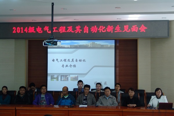 2014年9月24日12点40分,2014级电气工程及其自动化新生见面会在主东301召开。专业主任张佳薇、专业全部12位老师以及14级全体电气专业学生参与了本次见面会。