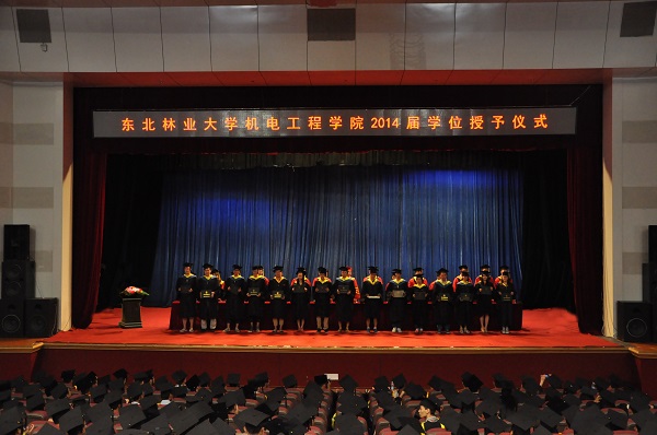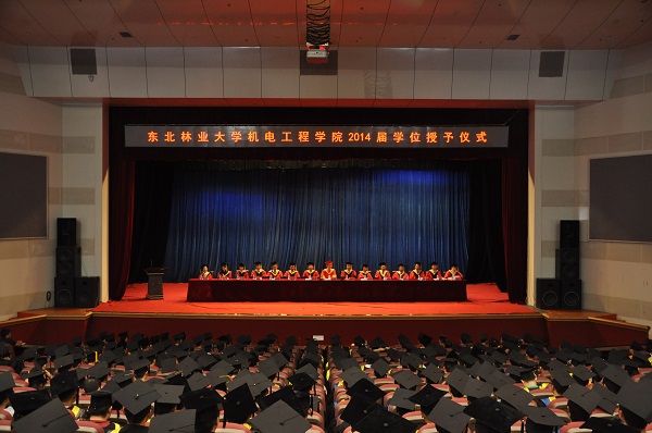 机电工程学院2014届学士学位授予仪式于6月21日上午在科学会堂隆重举行。东北林业大学副校长李斌教授、机电工程学院领导班子成员以及各学科带头人、专业主任和教师代表、2014届全体毕业生及部分学生家长参加了本次大会。