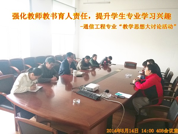 5月14日下午14:00,机电学院408会议室,通信工程专业全体教师根据校院两级关于《东北林业大学开展本科教学思想大讨论活动实施方案》的工作部署,结合机电工程学院本科教学思想大讨活动日程表如期召开了首次讨论活动。