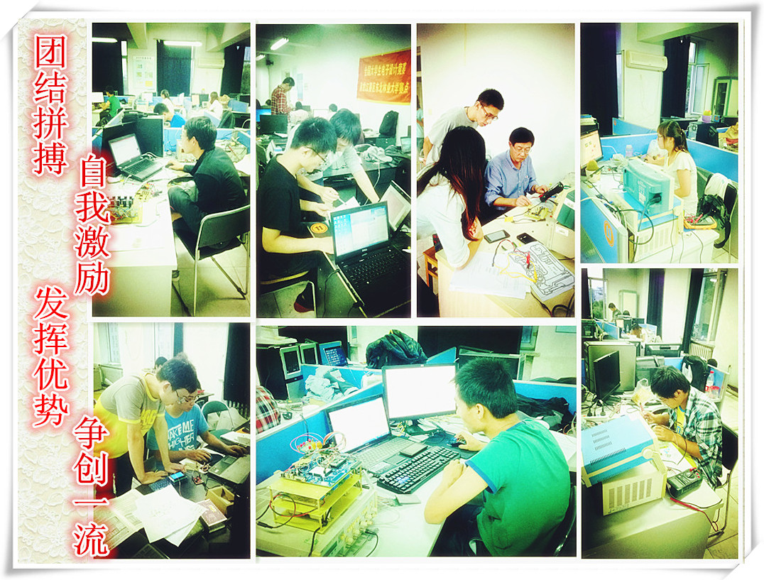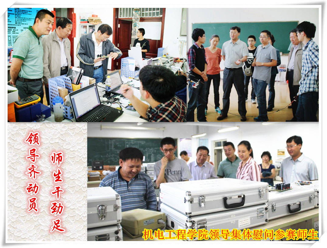 此次竞赛在教务处的大力支持下,机电工程学院精心组织,指导教师团结协作,有力地保障了119名参赛队员顺利完成比赛。赛前,所有参赛师生放弃暑假休息时间在信号分析处理、高频电子电路、自动控制系统三大方向上进行了有针对性的准备;赛中,在9月4日-9月7日四天三夜的竞赛中,参赛队员克服疲劳昼夜奋战,历经竞赛作品测试、全国综合测试等环节的比拼,为我校代表队取得了优异的成绩。