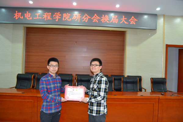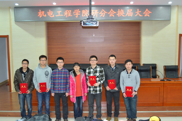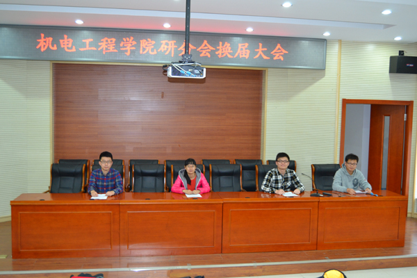 2013年11月19日,机电工程学院研分会换届大会在主东301举行。参加大会的有:机电工程学院研究生秘书、研分会指导老师李三平老师,机电工程学院第七届研分会主席2012级机械电子工程专业博士研究生鲍玉冬同学;新一届研分会组织机构成员以及机电工程学院研究生代表。