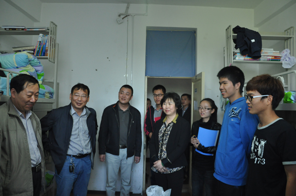 随后,王书记一行走进大一新生寝室,为大家分发月饼和水果,并代表学院向大家表达问候。学院领导们勉励2013级新生要勤奋自勉,尽快适应大学生活。同学们围在桌前,品尝着精致月饼和新鲜水果的同时,纷纷表达了对学校关怀的感谢之情,并和各位老师分享了各自入学以来的很多感触。