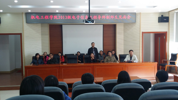 2013年9月25日下午3点40,机电工程学院电子信息教研室全体教师为2013级新入学的电子信息工程专业的全体学生召开了导见面会。