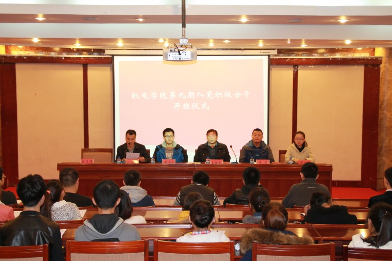 2013年10月11日晚6点,机电工程学院党校第九期入党积极分子培训班开班仪式在动资楼331学术报告厅召开。机电工程学院党委书记、党校校长王维宏老师,党委副书记副院长于洋老师、政治辅导员邓天开、刘文彬、吴一平老师以及136名参训学员参加了开班仪式。本次开班仪式由12级政治辅导员刘文彬老师主持。