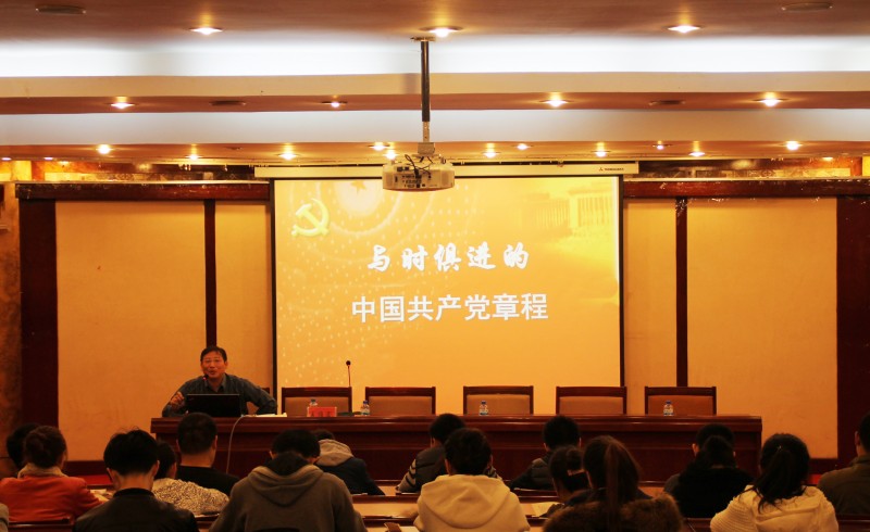 伴随着庄严肃穆的国歌,党校第九期入党积极分子培训班开班仪式正式开始。首先,由学院党委书记王维宏老师宣布了党校第八期入党积极分子培训班的结业学员以及优秀学员的名单,并与其他老师一起为优秀学员颁发证书。紧接着,第八期优秀学员代表、2012级自动化专业曹捷同学上台发言,他讲述了一年来对党的理解以及对自身的教诲,表达了要珍惜机会,努力学习的决心。随后,于洋老师作了第九期积极分子培训班开班动员讲话。他首先代表学院党委对在座即将接受培训的学员表达了热烈的祝贺,同时他希望全体新学员珍惜和重视这次难得而关键的学习机会,通过此次学习树立远大的目标,成为思想过硬、能力过硬、专业过硬的高素质复合型人才,早日站在党旗下。仪式结束后,王维宏同志为本期学员作了主题为“与时俱进的中国共产党章程”的开办讲座,系统地阐释了党的性质、党的历史,为学员更多地了解党、认识党起到了积极地作用。