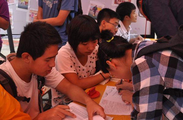 新同学们在11级和12级学长的带领下,顺利的完成了报到的各项流程,开始适应大学生活。在他们身上,我们看到了满怀憧憬的朝气,初进大学的青涩和不畏困难的勇气与活力,让我们深受感染。同时,新同学的蓬勃朝气也使得在校生们感触颇多,反省自身不足,再次积极向上地面对自己的大学生活。