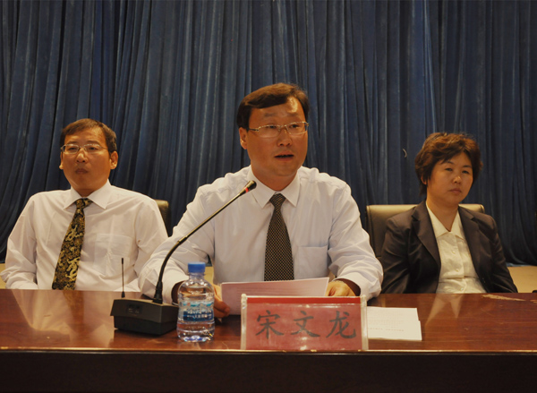 首先,机电工程学院院长宋文龙向全体新生致欢迎辞。他首先祝贺新生考上东北林业大学这所知名高校,代表学校对辛勤培养学生的家长们表示诚挚的谢意,并对新生们的到来表示热烈的欢迎。随后,宋院长向新生和家长详细介绍了机电工程学院的办学历史与取得的教学及科研成果,并希望新生珍惜大学生活,珍惜大好青春,努力完成学业的同时实现个人的价值。最后,宋院长提出几点希望,他希望2013级的全体同学要有责任心、懂担当、重感恩,做合格的当代大学生。宋院长同时强调,作为工科学生,因而从入学开始就要有意识地培养自己的科研意识和动手能力,积极参加各类大学生科技创新比赛,从中汲取丰富的经验,努力成为机电类的精英人才。