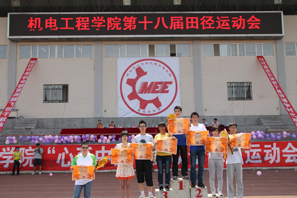 2013年5月18日,机电工程学院以“心系中国 舞动梦想”为主题的第十八届田径运动会在学校田径场隆重举行。莅临本次运动会开幕式的领导和嘉宾有校体育部副主任王苏伟、校体育部副主任范春来、校团委副书记李晶才、校学生总会主席王雪,学院党政领导班子成员及院工会主席与参会的嘉宾共同在主席台前就坐。机电工程学院全体教职员工、非毕业班全体学生参加了此次运动会,大会开幕式由2010级辅导员王新宇老师主持。