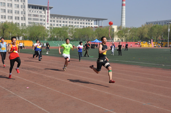 由学院学生干部和团委精心策划的集体舞和女子水鼓表演之后,随着一声枪响,田赛、径赛等十几个项目的赛事正式开始。在跑道上、沙坑前、投掷场,运动员们在比赛、在拼搏,战胜对手的同时,也努力不断超越自我,为班集体争光。啦啦队的呐喊声,广播里同学们摘金夺银的公告声,与一浪高过一浪的欢呼声交织成令人振奋的乐曲!在中心场地上,心心相印、多人跳绳、滚雪球、循环跳绳、袋鼠跳、阳光伙伴等趣味项目也在如火如荼地进行着。学院的教工以工会小组为单位积极参与运动会,认真对待和准备每一个比赛项目,“玩”的也是不亦乐乎!此外,学院还独具匠心,组织了机电宝贝趣味运动会,参赛选手都是3—7岁的小宝宝们,现场“状况”频出,妙趣横生,成为赛场上另一道亮丽的风景线。