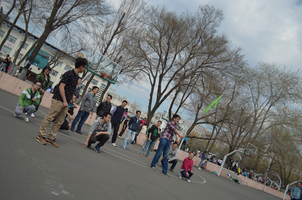 首先每小队各自进行趣味小游戏,主要有“马兰花”(当讲师喊开几朵花时,几个人迅速抱在一起)、“相互鼓励”(依次拍相邻人的后背并喊我们是最棒的团队)、“风雨同舟”(听到讲师口令后所有人立即围成一个圈,同时队员双手搭在前人的肩上并坐在后人的腿上,然后在讲师的指导下绕圈走)等。之后是团队展示环节,每个小队分到旗子、旗杆和黑水笔用来设计自己的队名、口号、队歌和队旗,规定时间结束后分别在其他队面前介绍自己的团队。接下来的活动难度加大,“信任背摔”(参与者站在高处,准备好后向后倒去,下面的人伸出双臂将人接住)、“盲人方阵”(参与者被蒙上眼睛,并在一定时间内将一根绳子拉成一个最大的正方形)、“蜈蚣爬行”(参与者蹲下拉着前面一个人的裤脚向前走)。在这次活动中大家玩得都很开心,同时考验各个小队成员间的默契度和团队凝聚力,使参与者在自信心、责任感、适应性、创新能力和群体合作精神等方面得到增强。11级考评部员金照东同学在本次活动后谈了谈自己的感受:“这次活动很有意义,它提高了我们团队合作的意识,让我们认识到团结的力量,在活动中我们收获了快乐,也起到了锻炼身体的作用。”
