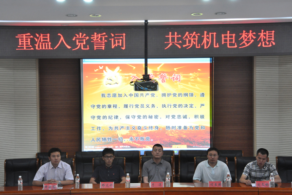 为庆祝中国共产党建党九十二周年,提高我院在校生党员的使命感和责任感。机电工程学院党委于7月1日在主东301学院会议室举行了主题为“重温入党誓词,共筑机电梦想”的在校生党员重温入党誓词大会。机电工程学院党委副书记、副院长于洋老师、全体辅导员老师以及学生预备党员参加了此次大会。大会由2012级辅导员刘文彬老师主持。