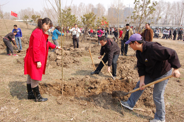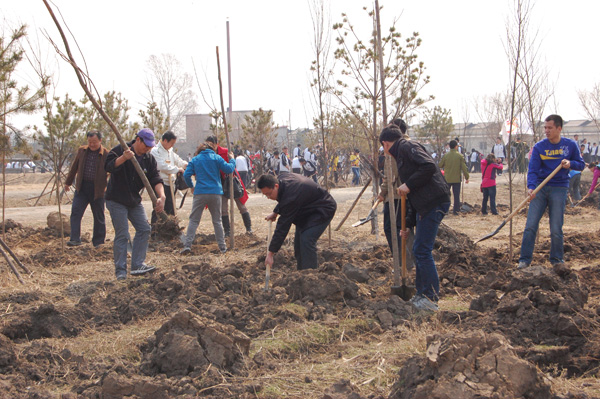 在“五一”国际劳动节来临之际,4月28日上午,机电工程学院党委组织部分党员教师和学生,赶赴东北虎林园参加植树义务劳动。
