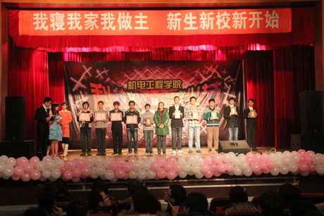 12月3日晚,机电工程学院第七届科技文化节暨寝室文化节颁奖晚会在学校小礼堂如期举行。学院党委副书记,副院长祝胜男老师、院团委书记郑燕老师、学生会指导教师10级辅导员王新宇老师及其其他各年级辅导员老师出席了晚会。