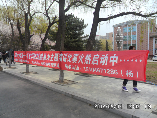 为了迎接学校60周年校庆,加强同学们的语言表达能力,强化同学们的交际能力,丰富同学们的课余生活,增强同学们的生命意识和社会责任感,繁荣校园文化,机电工程学院勤工助学中心于2012年5月6日晚六点在主东301成功举办以“感恩”为主题的演讲比赛。莅临此次大赛的评委和嘉宾有2010级政治辅导员老师付书朋、2011级政治辅导员申晓腾、校广播台主任、校勤工主任及各学院勤工主任。