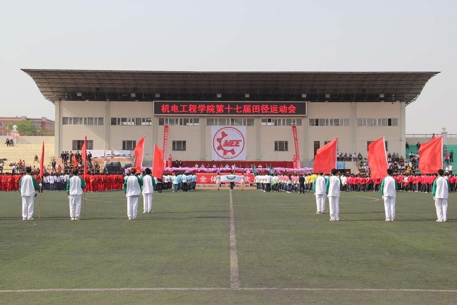 2012年5月19日上午7:30,机电工程学院第十七届田径运动会在校运动场上隆重举行。校学工部部长、学生处处长强添纲、校团委书记艾曦锋、体育部副主任范春来、体育部副主任王苏伟及校学生总会主席那尔虎兰同学应邀参加了本次运动会,并与学院领导班子全体共同在主席台就座。运动会由学院团委书记郑燕主持。