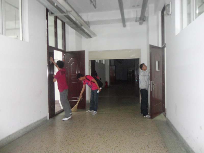 为了迎接学校60周年校庆,美化校园环境,为同学们营造更舒适的学习空间,同时增强同学们的责任心,培养同学们的社会实践能力,机电工程学院勤工助学中心于2012年6月10日晚六点在丹青楼一楼进行了义务清扫活动。为学校60周年校庆奉献出自己的绵薄之力。