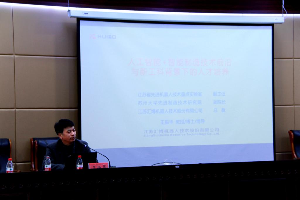 2019年04月03日下午13:30,机电工程学院于成栋楼722会议室举办题为《人工智能+智能制造技术前沿与新工科背景下的人才培养》学术报告会,会议由李树森副院长主持,主讲人为苏州大学王振华教授。参加此次会议的还有机电工程学院的各位老师以及研究生同学们。