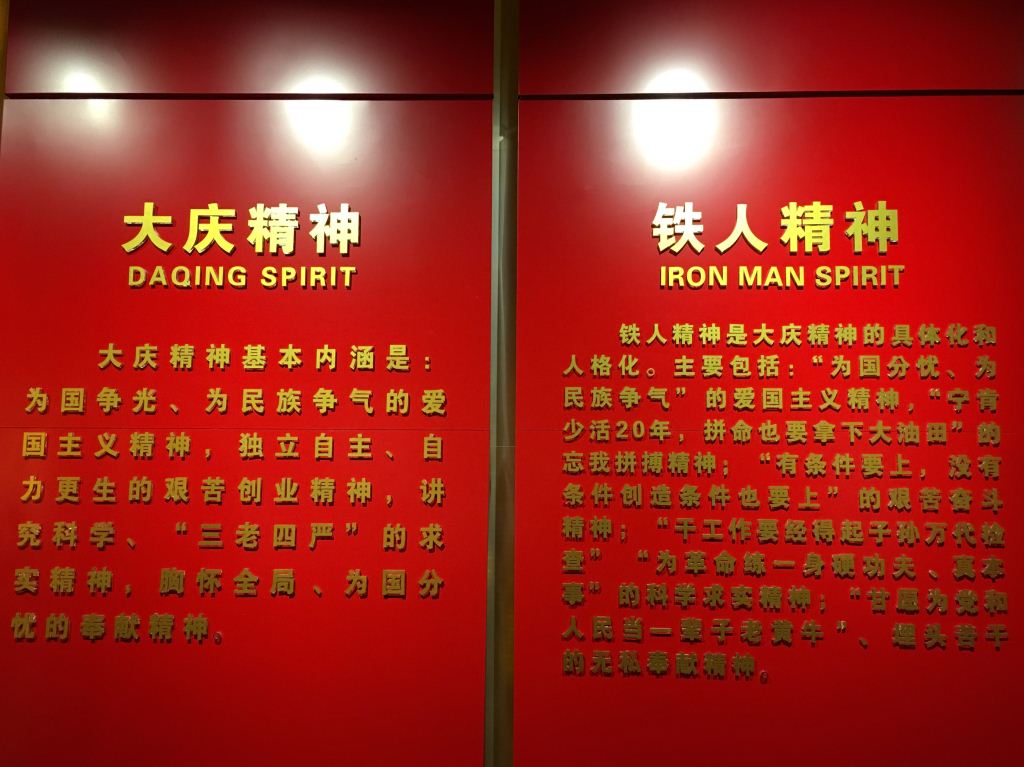 今年是大庆油田发现60周年。六十载爱国创业,一甲子求实奉献。在艰苦环境和激情岁月里形成的以爱国、创业、求实、奉献为主要内涵的大庆精神、铁人精神,永远是激励中国人民不畏艰难、勇往直前的宝贵精神财富。作为我国第一座工人纪念馆,铁人王进喜纪念馆是大庆的标志性建筑,也是大庆乃至黑龙江省享誉全国、引以为荣的一张闪光名片。一进纪念馆序厅,同志们就被迎面而来的一组以铁人王进喜为代表的铸铜雕像《石油魂》所震撼, 气势磅礴的英雄群像令人肃然起敬,一下子就把大家带回半个多世纪前发生在松辽盆地上的那场惊心动魄、热血澎湃的石油大会战。在一处题为“钻研”的雕像前,看见铁人与工人一道研究钻头使用和钻具革新的场景,有的同志顿时联想到机械设计制造等传统的工科专业在解决现代工程领域复杂技术问题中大有用武之地,也对铁人“光抓钻头,不抓人头,吃了苦头。先抓人头,再抓钻头,尝到甜头”的理论更加具体形象,不禁感慨“做学问、搞科研要像铁人一样有股‘钻研’的劲儿、认真的味儿、不服输的气儿。在传统+现代展示手段下,铁人故居、牛棚指挥所、破冰取水保开钻、大庆会展半景画、战报墙、会战诗抄墙、端水湖、标杆山以及铁人王进喜生前率领1205钻井队使用过的同型号贝乌40型钻机等历史场景和大庆精神、铁人精神的神韵得以生动再现,引人驻足。参观结束后,全体同志在寓意铁人47年不平凡人生历程的47级正门台阶上,合影留念,定格珍贵瞬间。