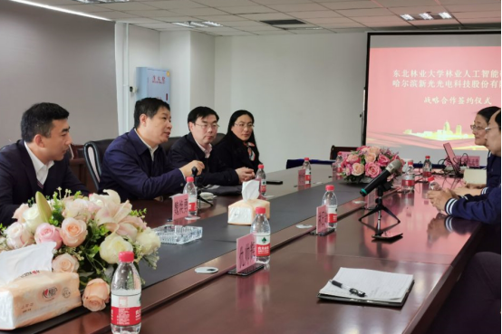 2019年11月7日, 我院林业人工智能研究院与哈尔滨新光光电科技股份有限公司签署战略合作协议,共同深化人才培养、科学研究、成果转化等领域合作,布局推进我院科学研究与林业装备智能化建设。校长、林业人工智能研究院院长李斌,机电工程学院院长、林业人工智能研究院执行院长刘九庆,科学技术研究院副院长魏焕勇,机电工程学院副院长杨春梅出席了签约仪式。
