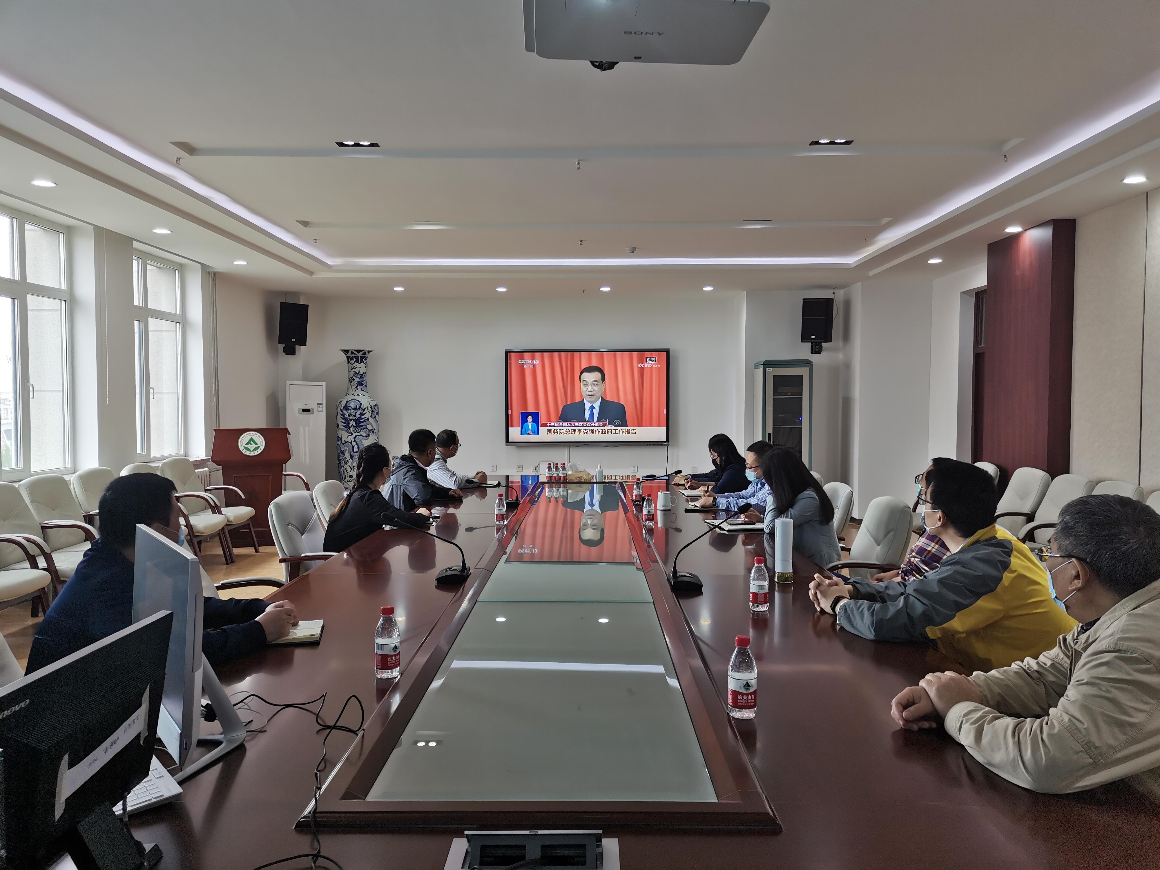 5月22日上午9点,学院班子成员、教师代表在成栋楼713会议室,集中收看十三届全国人大三次会议开幕会,聆听李克强总理作政府工作报告。会前,大家与屏幕内、会场内的代表一同起立,向新冠肺炎疫情牺牲烈士和逝世同胞默哀1分钟。
