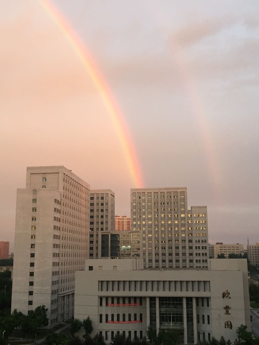 在整理物品现场有这样一个细节:许多男老师都接到自己孩子打过来的电话或发过来的微信“祝爸爸节日快乐”,大家才反应过来原来这天是父亲节。老师们用大汗淋漓把父爱如山演绎得淋漓极致,因为在老师眼里,每一名学生都如同自己的孩子,值得付出如山的父爱。正如当天傍晚、大雨过后,学生寝室楼上空出现了一道彩虹,寓示着一份特殊的毕业礼物,来自机电,寄自东林。