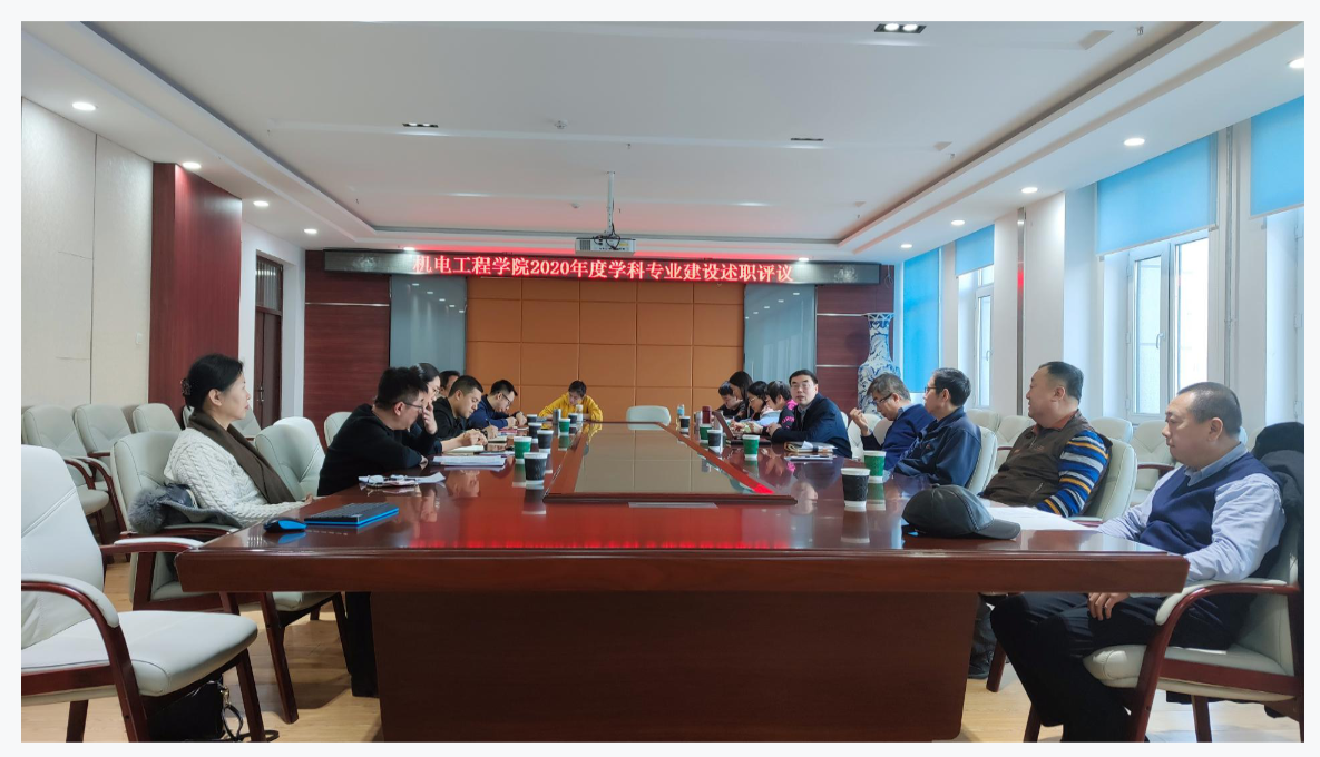 聚焦发展,规划未来。根据《机电工程学院岗位绩效工资分配实施方案(试行)》,关于学科、专业述职评议考核工作的有关要求,2021年1月5日上午,学院在成栋楼713会议室组织召开2020年度学科专业建设述职评议会。学院领导班子成员,一级学科带头人,专业负责人,学术领域方向负责人,实验中心、大学生创新中心负责人参加会议。会议由院长刘九庆主持。