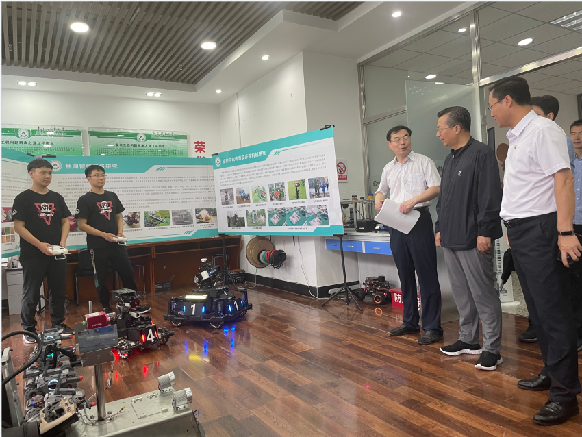 机电工程学院大学生科创中心实验室内,虽然已是暑期但参加各项科技竞赛的师生们正在如火如荼的备战中,副校长宋文龙详细介绍了学校开展大学生科技创新活动中的举措与成效,王永康同师生们进行了热情交流详细了解科技创新与人才培育情况,勉励全体师生,要时刻牢记习近平总书记的嘱托,要坚持把立德树人作为根本任务,为党育人、为国育才,把服务国家作为最高追求,希望学子们努力在校园锤炼本领,在祖国大地上发挥本领,积极参与龙江建设,为龙江农林科技建设贡献青春力量。