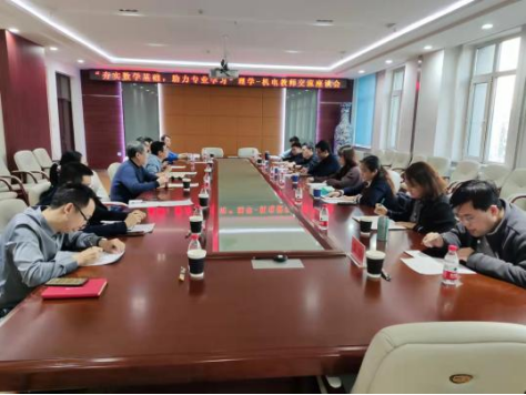 为加强院际交流合作,对话人才培养质量,推动数学基础课程与专业课程深度融合,2021年12月23日下午15:00机电工程学院邀请理学院教师在成栋楼713会议室召开教师交流座谈会,理学院数学系系主任王文龙、高等数学教研室主任刘铭、概率统计教研室主任顾海燕、应用数学教研室主任杨瑞智及机电工程学院教学督导刘嘉新、各专业主任、副主任参加会议。会议由机电工程学院教学副院长王琢主持。