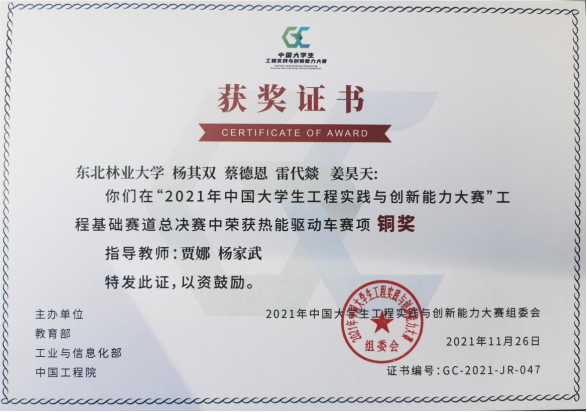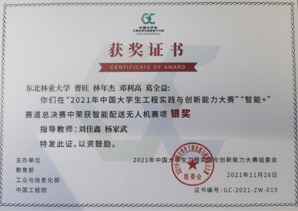 近日,第七届全国大学生工程训练综合能力竞赛线上总决赛闭幕。我校共有2个项目团队通过省赛代表学校参加国赛。经过激烈角逐,东北林业大学工程训练大赛团队的“智能配送无人机”项目获全国银奖1项,“热能驱动车”项目获全国铜奖1项。