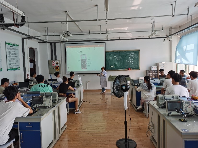 在学院领导的大力支持下,竞赛开展了有效的培训计划,从大一开始就进行了有计划的培训活动,这些保证了竞赛持续稳定产出。赛前宋其江组织竞赛指导教师王立峰、李丹丹等利用周末时间,在508实验室进行了6次赛前培训活动,指导元器件和仪器仪表使用、电路设计和仿真、单片机编程能力,通过蜂鸣器电路设计、温度报警、可控调光、可控云台等项目式训练,有力地培养了学生的实践能力,这些培训为本次比赛打下了坚实基础。培训和竞赛期间如图所示。希望通过有效竞赛机制运行,还有指导老师的持续投入,明年全国电子设计大赛取得更优秀的成绩,为培养一流人才贡献力量。