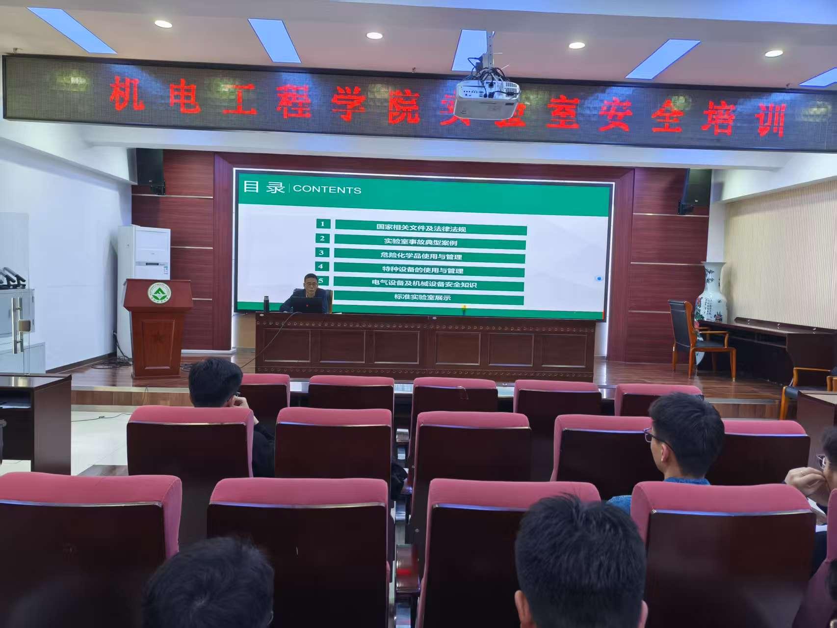2025 年 4 月 20 日,机电工程学院组织开展了实验室安全培训,邀请学校安全督导员杨德岭老师,深入讲解实验室安全知识,强化学生安全意识。学院2024级研究生代表参加培训。
