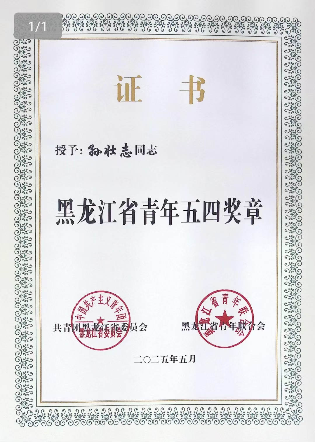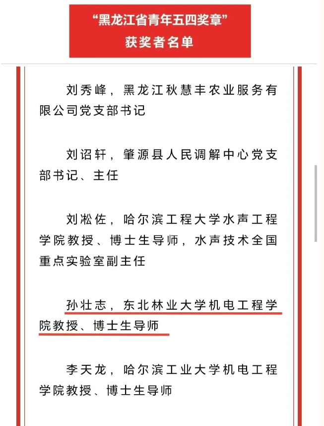 5月3日,共青团黑龙江省委、黑龙江省青联印发《关于颁授第26届黑龙江省青年五四奖章的决定》,我校机电工程学院教授孙壮志被授予第26届“黑龙江省青年五四奖章”。