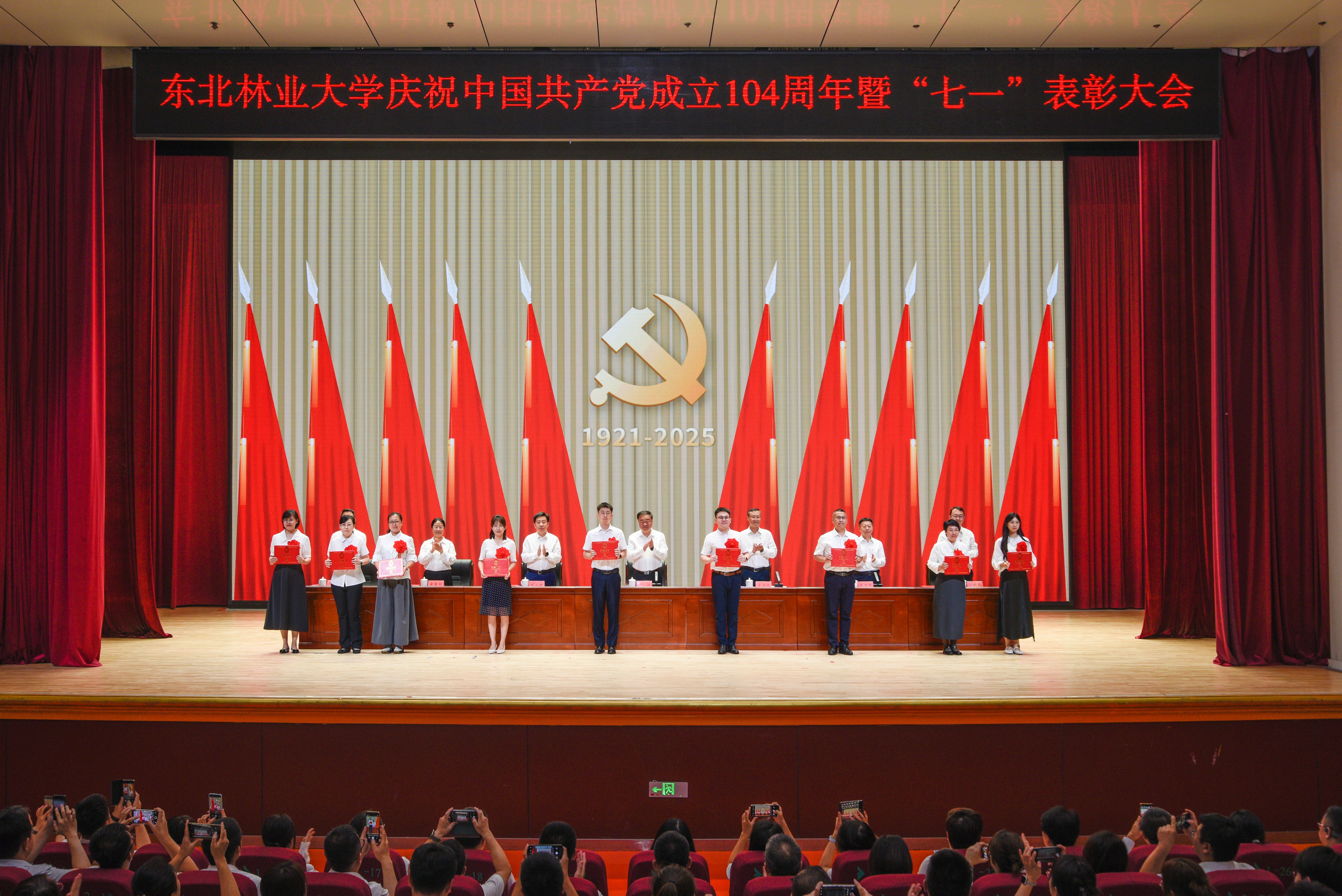 校领导先后为学校2023-2025年度103名优秀共产党员、23名优秀党务工作者和22个先进基层党组织代表颁奖。