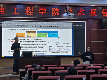 Joo Ho Choi教授首先介绍了PHM的基本概念及其在预测性维护中的关键作用。随后,报告详细讨论了PHM在航空行业中的应用,涵盖了飞机发动机、机身结构及各类子系统的健康管理。Choi教授通过多个实际案例,展示了PHM技术如何帮助提升航空设备的可靠性和维护效率,减少故障率和维修成本。此外,报告还涉及了新兴的PHM研究方向,包括四旋翼驱动电机的健康管理、电池PHM在先进航空车辆(AAV)中的应用,以及可重复使用运载火箭的基于可靠性维护(RCM)的研究。教授的讲解深入浅出,吸引了在场师生的广泛关注,本次学术报告会取得了圆满成功。