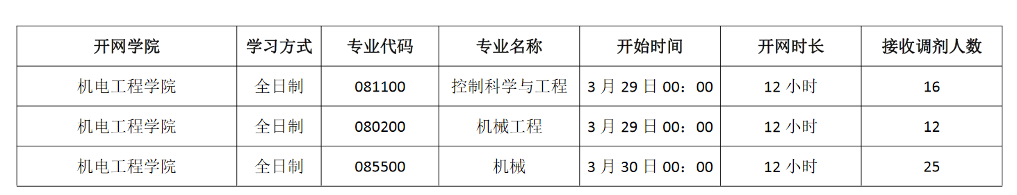 注:专业代码085500 机械 仅控制工程方向有调剂名额