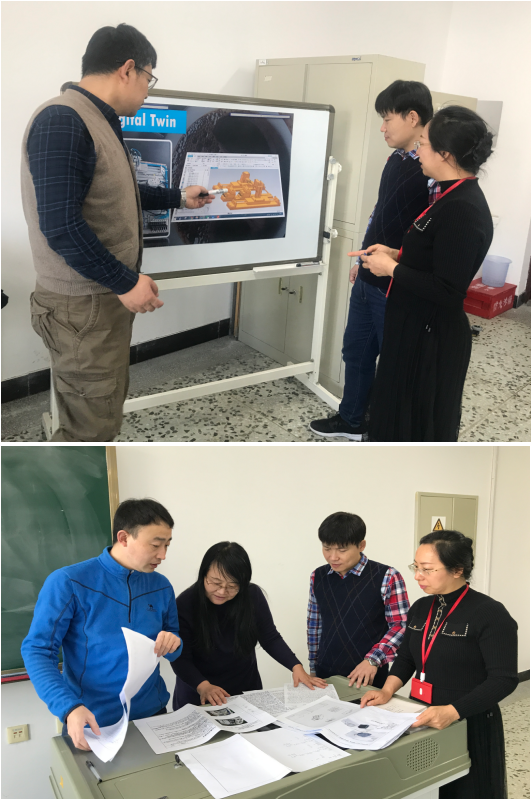 指导毕业设计。为进一步提高毕业设计质量,专业与上海一科技公司协商,拟共同指导本科毕业设计,学院教师负责指导结构设计部分,企业技术人员负责指导Unity中的C++编程仿真事宜。12月初,专业教师赵辉、王福生和张东煜组成毕业设计联合指导小组,与科技公司共同对学生进行了培训、指导。三位教师针对设计题目以及假期远程指导事宜进行了讨论,确定了线上指导联络方案和培训平台,明确了培训方式和具体分工。