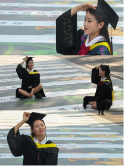 身穿学士服,头戴学士帽