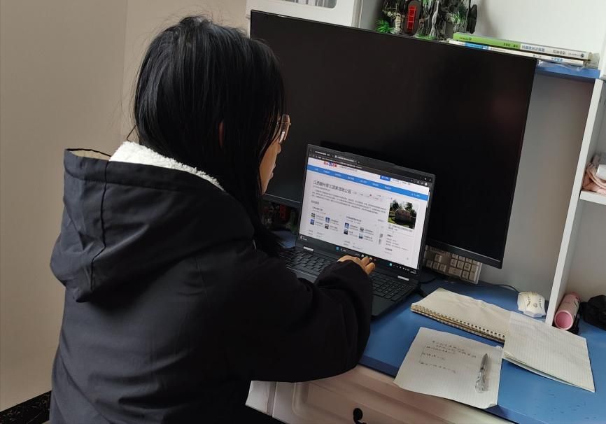 寒假期间,黄雅萍前往章江国家湿地公园,开展家乡“两山论”实践案例调研。2月13日,黄雅萍通过网络查阅资料,梳理章江国家湿地公园的建设背景与发展历程。